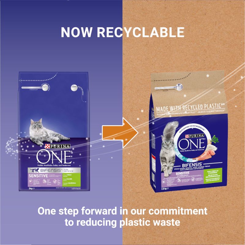 Purina One Sensitive Adult Cat Turkey and Rice Dry Food 2.8KG is formulated specifically for cats with sensitive tummies. It is a complete food, containing specific proteins to help manage food tolerances. It also helps promote firm stools with 24% less odour. Highly digestible, this food provides your cat with all the nutrition they need.